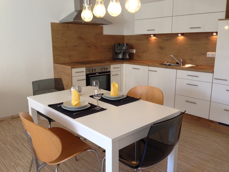 Die gesamte Einrichtung inklusive der Küche sind ganz neu. Kaffeeautomat, Wasserkocher, Toaster, Spülmaschine und Backofen.