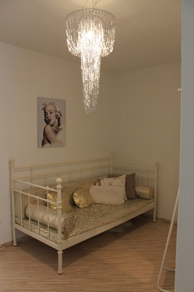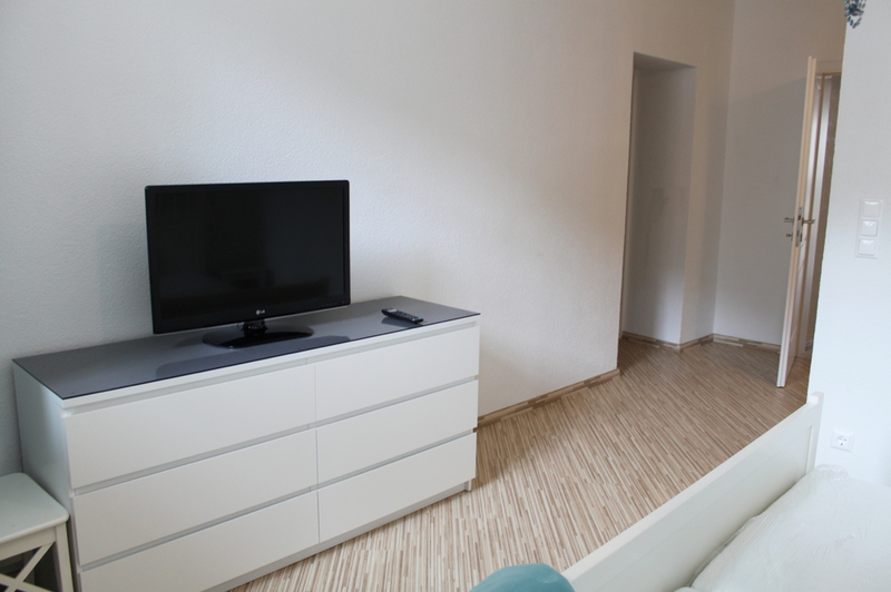 Die Wohnung verfügt über 1 großes Schlafzimmer mit einem Doppelbett 180 x 200 und einem Einzelbett 90 x 200.